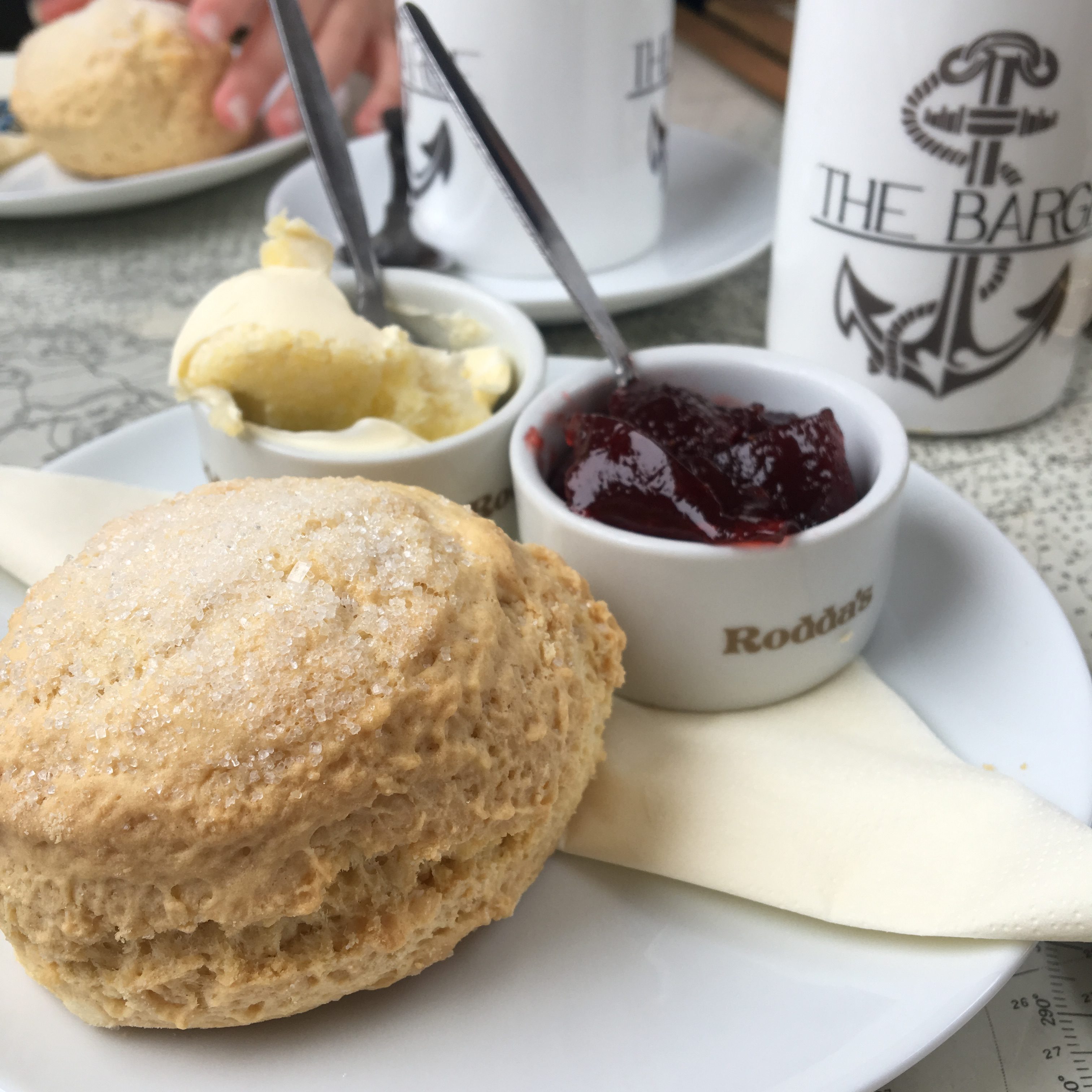 I’m going to put it straight out there, but jam first on your scone is just wrong, wrong, wrong. They do it right in Devon with the clotted cream layer down first. But as they say, when in Rome or when in Cornwall, so I persevered with the jam on first.